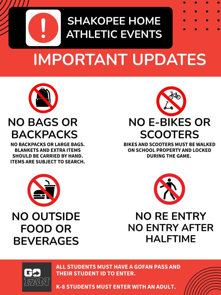 New for Fall of 2025, Shakopee will be using GoFan for tickets and passes. This will require some changes, especially as far as passes are concerned for students. Students will need to download a season pass on to their device (or their parent's device) as well as show their ID for free entry into games.